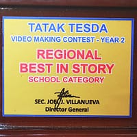 AMG Skilled Hands Technological College (ASHTEC) received an award from Technical Education for Skills Development Authority (TESDA) last June 15, 2015 for winning the competition: “Tatak TESDA Video Making Contest Year 2”. The ASHTEC’s entry for this competition won the Best in Story among its competitors from Region III. The competition was exclusive to all Technical-Vocational schools in the region.